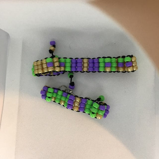 Purple , green and gold beaded Mardi Gras themed necklace and braceletlet